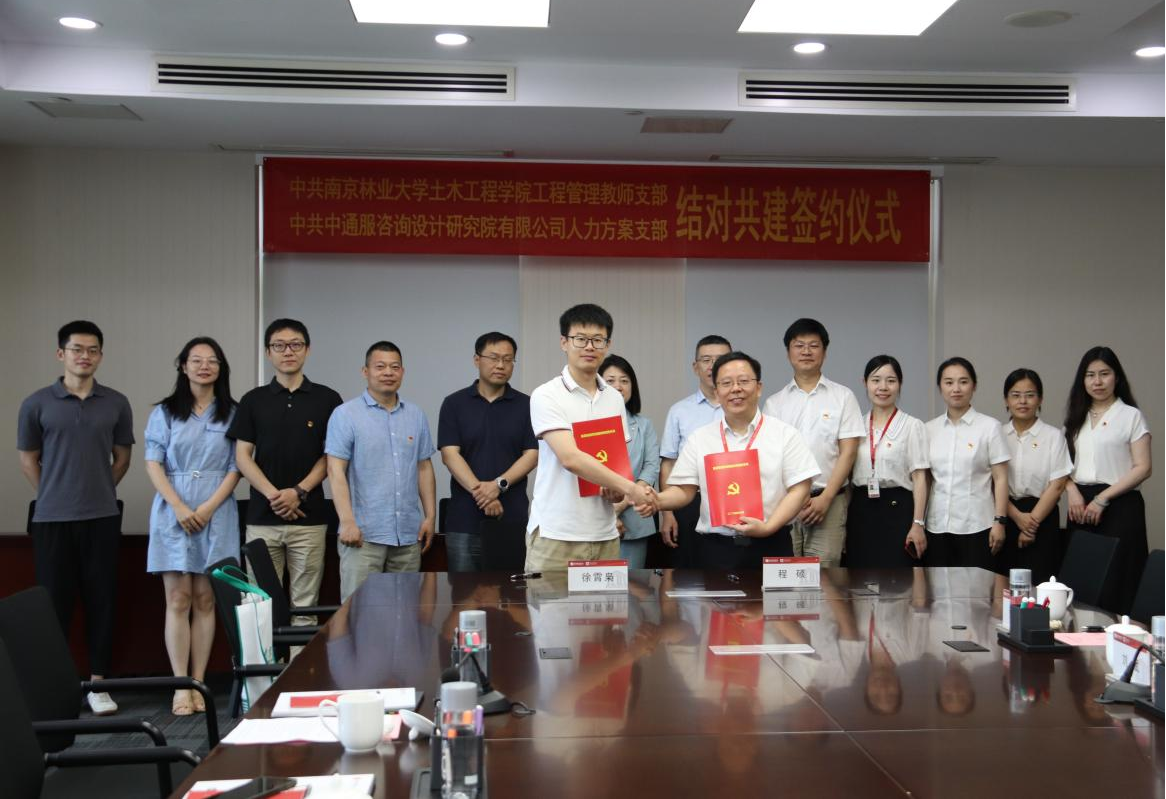 参观后,学院与企业进行党建工作座谈交流。中通服设计院党委书记、总经理朱强介绍了企业的发展历史、党建活动特色以及公司主营业务开展情况。学院党委书记王雪介绍了学校及学院的历史与现状、专业学科特色、人才队伍建设、科学研究成果与校企合作成绩。中通服人力资源部主任程硕介绍了支部的发展历程以及党建活动、党纪学习的开展情况。学院工管支部书记徐霄枭从“以金铸魂、以水润泽、以土筑基、以火燃情、以木促生”五个方面介绍支部的情况。两个支部签署校企党建结对共建协议,推动双方党建工作再上新台阶。