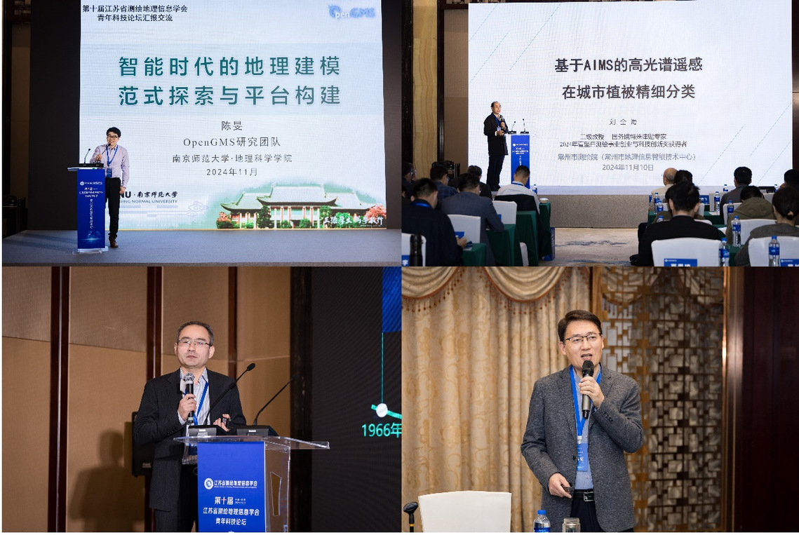 此外,论坛还邀请到南京师范大学地理科学学院学术委员会主任陈旻教授作了题为“AI时代的地理建模与模拟”的报告,陈旻教授指出,当前自然资源变化风险预警存在过程认知不足、建模手段落后、服务平台缺乏的问题,亟需突破自然资源变化监测与风险预警理论与技术瓶颈来保障自然资源安全和可持续高质量发展,并为各位青年科技工作者介绍了其团队开发研究的开放式地理建模与模拟系统OpenGMS,召集广大青年工作者集思广益,积极交流,实现知识共享;同时常州市测绘院党委书记刘全海作了题为“基于AIMS的高光谱遥感在城市植被精细分类研究与进展”的报告,为青年科技工作者介绍了AIMS航摄仪获取的高光谱遥感数据,对常州市城市植被进行精细分类的研究,并成功应用于创建“国家生态园林城市”的评估过程中,刘教授面向青年科技工作者展望了深度学习在高光谱图像处理中的潜力,为青年科技工作者提供了一个技术创新的实例,鼓励他们在各自的研究领域探索新技术和新方法,同时激发青年科技工作者的创新思维,鼓励他们在未来的工作中探索新的思路和解决方案;接着园测信息科技股份有限公司总经理范占永作了题为“基于时空信息的数字孪生城市建设实践”的报告,简单介绍了数字孪生的发展现状与行业需求,并从城市管理、智能楼宇、智能交通等多个应用层详细说明了数字孪生如何赋能城市管理,最后从城市规划等宏观城市级应用、智慧园区等中观区域级应用和楼宇管理等微观建筑级应用三个层面分享了数字孪生的应用案例,使青年工作者切身感受数字孪生新赋能的应用成效;最后是江苏省测绘地理信息学会副秘书长卢清超作了题为“三审三校视角下的论文写作”的报告,与各位青年科技工作者深入探讨了学术论文写作的规范与技巧,详细阐述了论文写作的基本原则,并强调了论文重复率的控制和涉密内容的处理,以及如何规范使用插图和表格和正确引用参考文献等问题。卢教授还分享了关于量和单位、数字使用、以及常见用语错误的专业建议,旨在帮助青年科技工作者提高论文写作水平,避免常见错误,提升论文的学术价值和发表概率。讲到最后,卢教授又通过实例分析,进一步阐释了论文写作中的细微差别和注意事项,为与会者提供了宝贵的写作经验和技巧。
