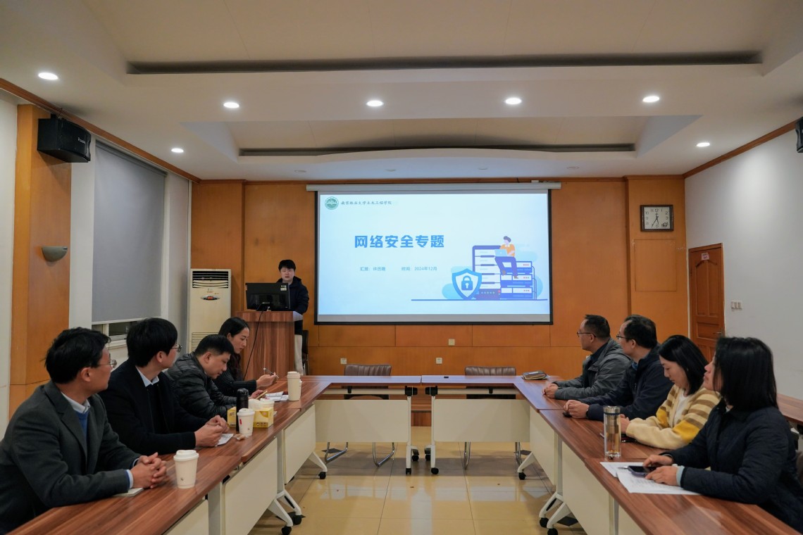 12月2日,学院在林机楼3324报告厅召开网络安全工作专题会,学院院领导、党委理论学习中心组成员、各系(室)中心主任代表参加了此次网络安全专题会。本次网络安全专题会由学院党委书记兼网络安全和信息化工作责任人王雪主持,并由学院网信工作联系人许历隆做专题汇报。