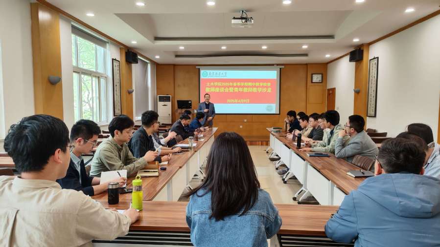 为进一步加强学院教师教学工作的规范性、提升青年教师教学能力和水平,4月9日下午土木学院组织召开了2025年春季学期期中教学检查教师座谈会暨青年教师教学沙龙。学院副院长戴兆华、学院教学督导组组长黄新、学院2022年以来入职的青年教师、各系分管本科教学工作的系主任以及学院教学秘书参加了本次会议,会议由学院副院长戴兆华主持。