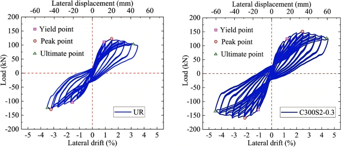 因此,本研究提出了一种在塑性铰区使用不锈钢网格增强UHPC套箍局部加固钢筋混凝土柱的新方法。为验证加固方法的有效性,针对4个加固柱和1个未加固柱开展了低周反复加载试验,分析了UHPC套箍高度、不锈钢网格层数和轴压比等因素对试件破坏模式、滞回机理、延性和自复位能力的影响规律。试验结果表明该种加固修复方法可显著降低钢筋混凝土柱的损伤程度。采用两层不锈钢网格和300mm高的UHPC套箍可将试件的延性系数和累积能量耗散提升36%和111%。此外,建立了加固柱的精细化三维实体数值模型,进一步揭示了加固柱的抗震破坏机理。本研究为钢筋混凝土柱的抗震加固提出了新方法,并提供了试验及理论依据。