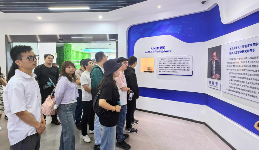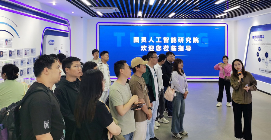 图灵人工智能研究院首先组织学员参观研究院展厅。学员们结合工程管理专业视角,通过展厅内丰富的内容,深入了解了研究院的发展历程及其在人工智能领域的重要创新成果。展厅特别展示了人工智能技术在智慧城市建设、智能制造系统优化、智慧医疗设施管理、芯片科技项目实施等方面的典型产业化应用案例,直观体现了人工智能技术如何提升工程项目管理效能,助力企业实现数字化转型与可持续发展。