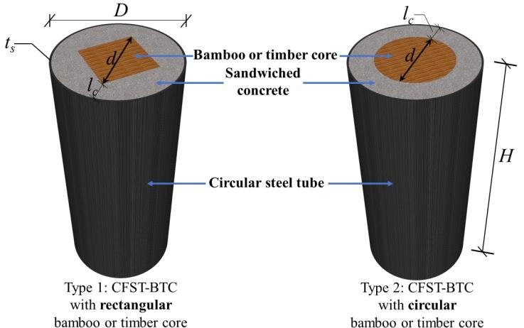 内置竹/木生物质芯材的钢管约束竹/木混凝土组合结构