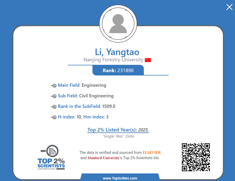 李扬涛入选2025年度科学影响力排行榜--教授简介 //easywaylnn.net/lyt/main.htm