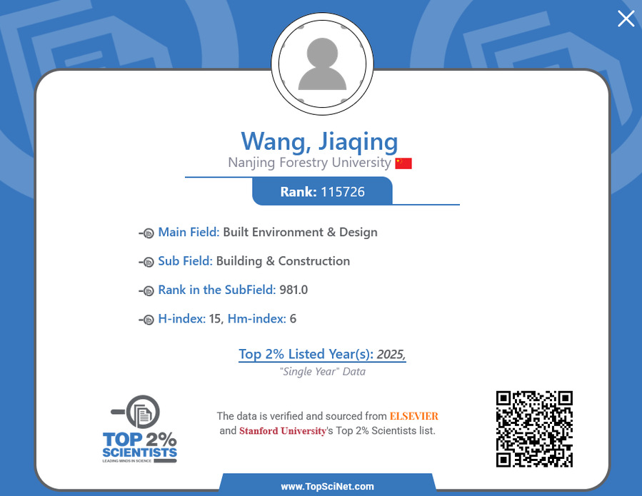 王家庆入选2025年度科学影响力排行榜--教授简介 //easywaylnn.net/wjq/main.htm