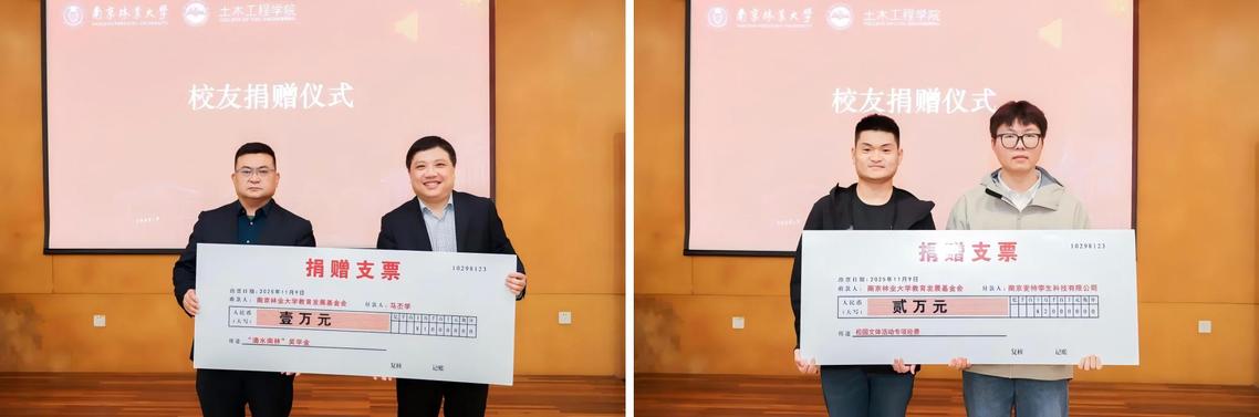马丕学校友企业设立“滴水南林”土木学院奖学金     陈超校友企业设立校园文体活动专项经费