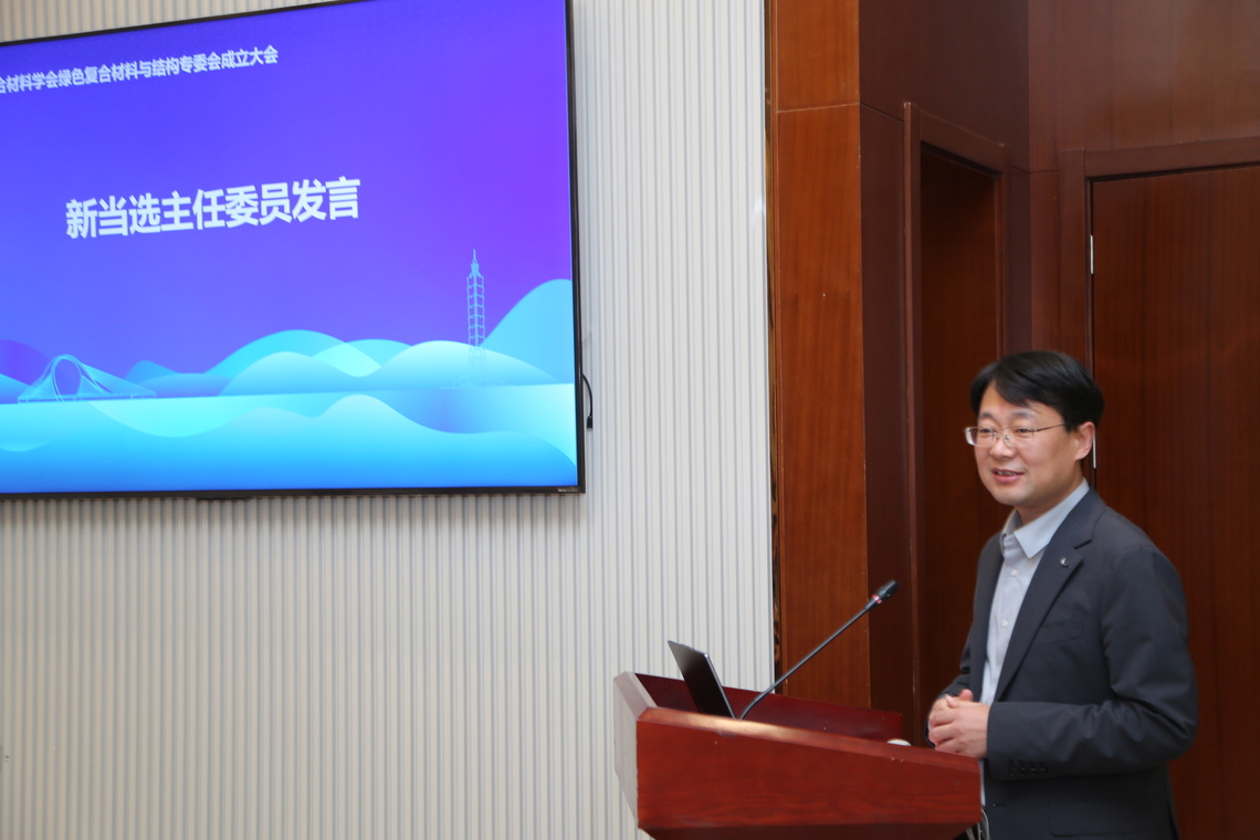 随后,休闲小栈 魏洋院长作为新当选主任委员发表讲话。魏洋院长汇报了专委会成立的背景、意义与目标,强调今后将重点开展以下四方面工作:一是搭建高效协同的行业交流平台,打造开放包容、务实创新的合作交流生态圈;二是深化产学研用深度融合,推动技术创新和转型升级;三是构建高素质人才培养体系,促进应用型、复合型高质量人才培养;四是积极履行社会责任与行业担当,提升行业的社会责任感与公众影响力。专委会将成为连接政、产、学、研、用的坚实纽带,为绿色复合材料与结构领域的创新发展注入新动能。