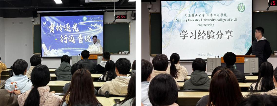 接下来进行的是国家励志奖学金获得者学习经验分享。李天齐同学向大家讲解了综测的计算方法,鼓励大家积极参加各项竞赛志愿活动,充实自己的大学生活;华曼琪同学则向大家分享了国家励志奖学金的获得条件、申请流程等。