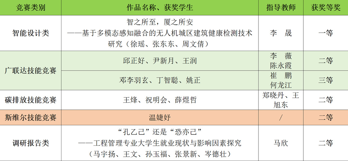 近年来,休闲小栈 工程管理专业秉持“以学生为中心”理念,深化教育教学改革,持续优化专业课程体系,坚持“以赛育人、以赛促学、以赛促教”,着力培养学生的创新意识与工程实践能力,努力为土木建筑行业转型升级高质量发展培养更多高素质工程管理人才。