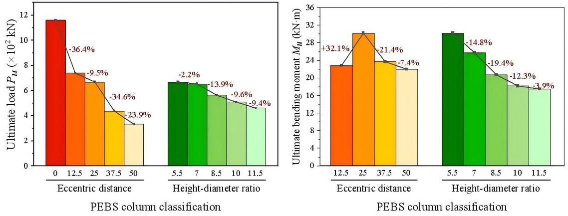 偏压破坏是组合柱工程应用中常见的失效模式,而弱轴偏压工况因受力机制复杂,相关研究尚显薄弱。基于团队前期在PEBS组合柱轴压及强轴偏压力学性能的研究基础,本次研究聚焦于弱轴偏压力学性能,设计了多组不同偏心距、高径比参数的试件,通过试验及理论研究,深入探究了PEBS组合柱在弱轴偏压下的承载特性、变形规律及破坏机理,定量分析了偏心率和高径比对组合柱偏压承载力的影响规律。
