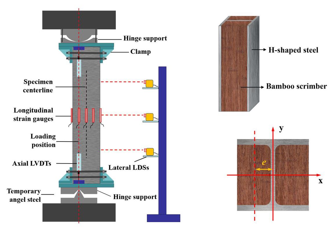 在双碳战略纵深推进的背景下,兼具低碳可再生与优异力学性能的竹木材料,正逐步成为建筑工程领域的研究热点。为充分发挥钢竹两种材料的优势,课题组创新地提出一种型钢部分包裹竹组合柱(PEBS)结构形式——通过型钢对竹材的局部约束作用,构建协同工作的复合承载体系。该结构设计既可以有效提升型钢受压的稳定性和抗屈曲能力,又通过型钢部分约束限制了竹材承压时过早的劈裂破坏。