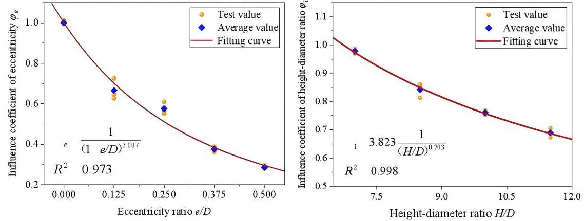 偏心距和高径比对偏压承载力的影响系数模型