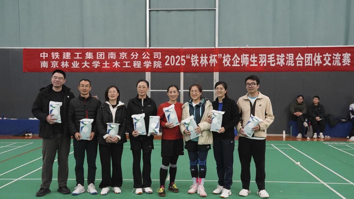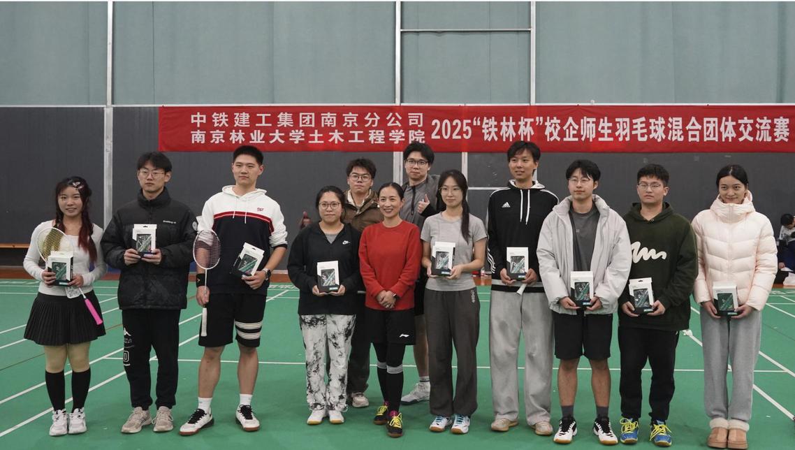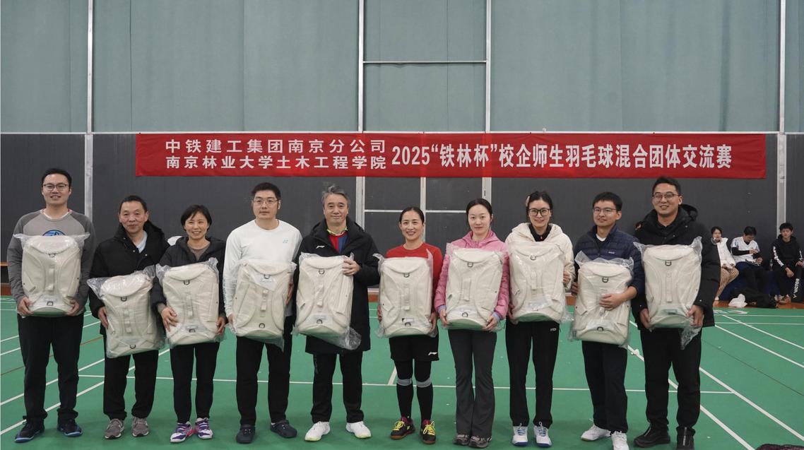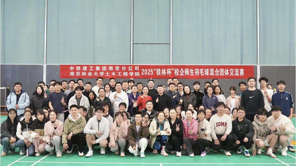 2025年12月6日下午,中铁建工集团南京分公司、休闲小栈 在学校新体育馆羽毛球场举办了第七届“铁林杯”校企师生羽毛球混合团体交流赛,中铁建工集团南京分公司职工、休闲小栈 教职员工、研究生、本科生近100人报名参加了此次活动,赛事规模创造了休闲小栈 羽毛球比赛的历史新高。