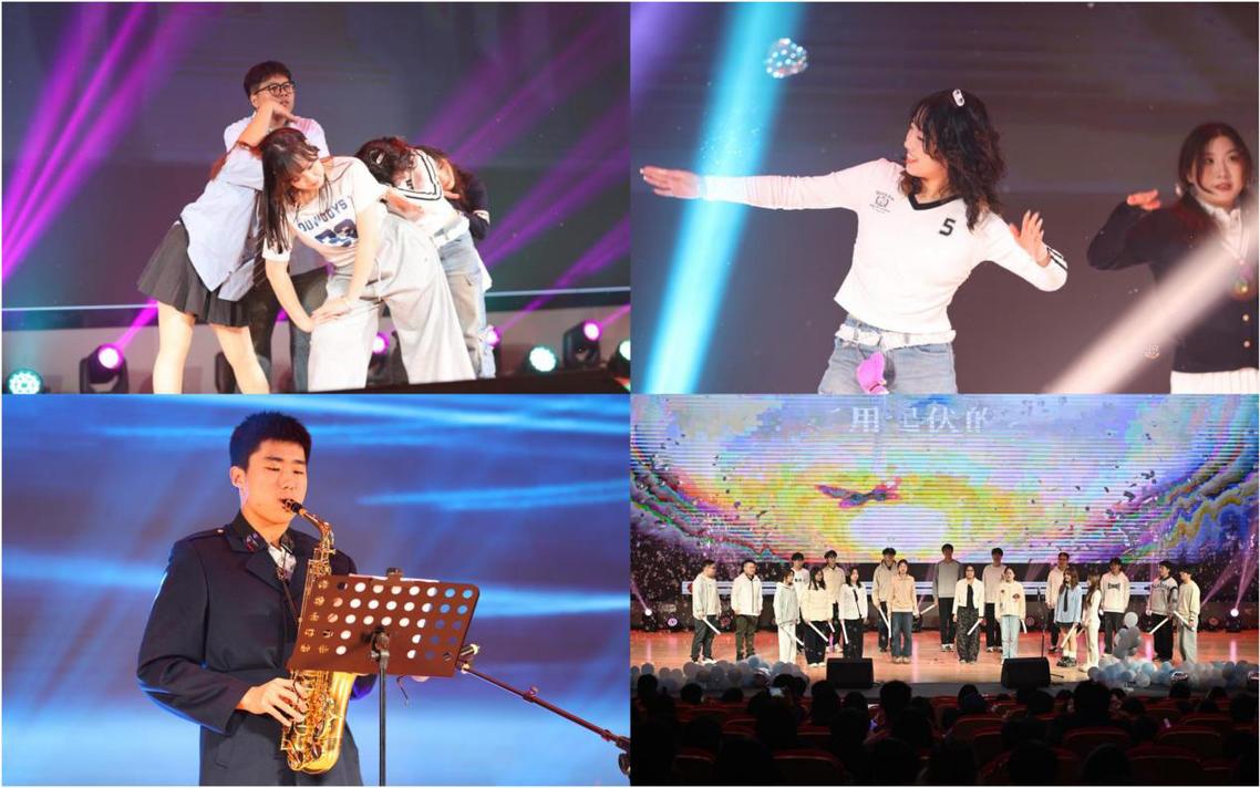 舞蹈社张若冰、潘一迪等同学带来了舞蹈《Ditto》,以活泼默契的舞步,展现青春如林木初展枝叶般的生机。工程管理21班的吕靓怡、李依晨对唱《推开世界的门》,用歌声鼓励每个人勇敢推开未来之门,走向辽阔天地。测绘工程41班的赵天屹同学萨克斯独奏《You Raise Me Up》,以萨克斯旋律深沉悠扬,如夜色温柔,抚慰每一颗前行的心。休闲小栈 学生会代表齐声合唱《下一个天亮》,传递并肩前行、共迎黎明的温暖力量。