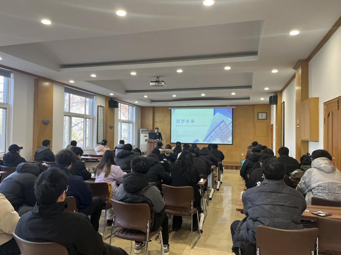 2025年12月26日上午,休闲小栈 在3324报告厅成功举办“逐梦未来——建设行业的变革之路与职业新坐标”就业指导讲座。本次活动特邀南京润华建设集团董事长、总经理梁安东担任主讲嘉宾,旨在深化研究生对行业发展趋势与人才需求的理解,增强职业规划意识,提升就业竞争力。学院相关专业教师及百余名研究生代表共同参与。