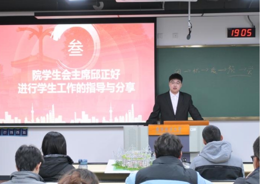 邱正好以“向下扎根,向阳生长”为主题,分享了学生工作的核心感悟与实践方法。他首先强调“学生干部的本职是学生”,学习是一切发展的基础,无论是入党、评优还是保研,学业成绩都是核心考量因素,建议大一新生尽早重视绩点提升,平衡好学习与工作的关系。他指出,大学学生工作是“服务+管理”的结合体,既要尊重每一位同学,又要明确自身职责,发挥桥梁纽带作用。